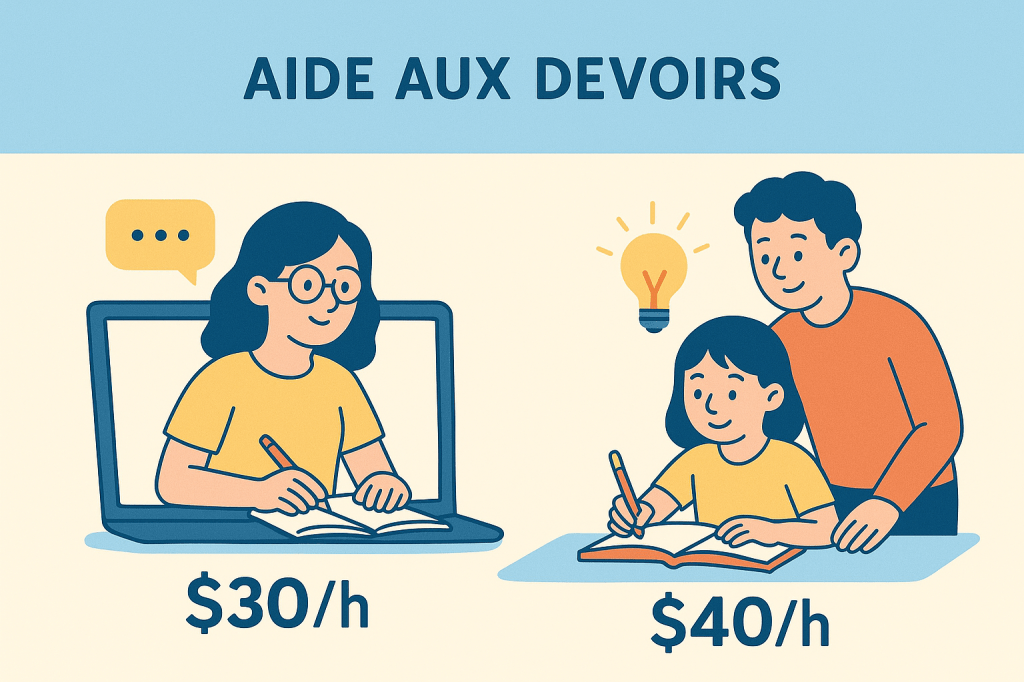 Offert directement en personne, notre service d’aide aux devoirs permet aux élèves de bénéficier d’un encadrement calme et propice à la concentration. Nos tuteurs, présents sur place, guident les enfants dans la réalisation de leurs travaux scolaires, répondent à leurs questions en temps réel et les aident à développer des méthodes de travail efficaces, dans un environnement stimulant et sécuritaire.